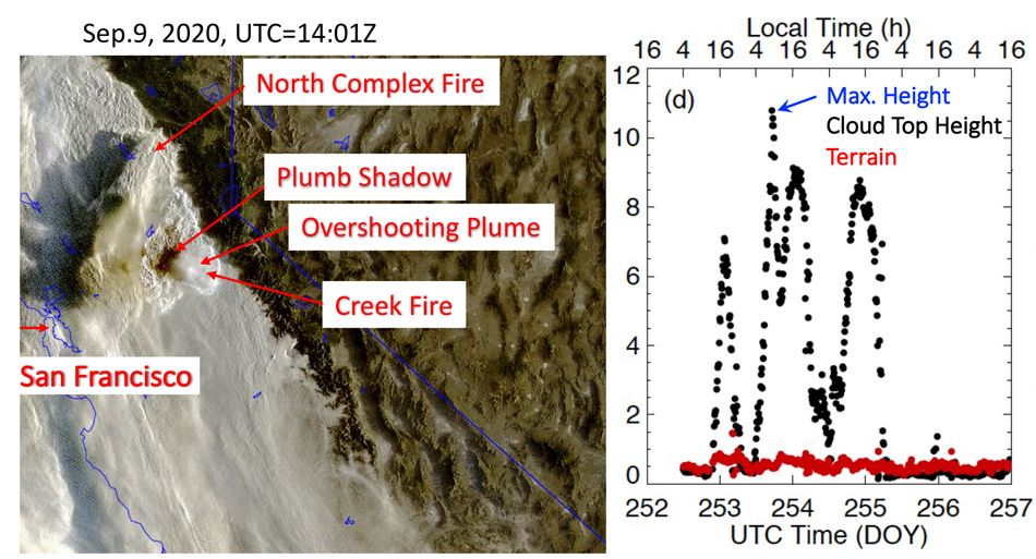 Retrieving fire cloud top height during the 2020 California Creek Fire.