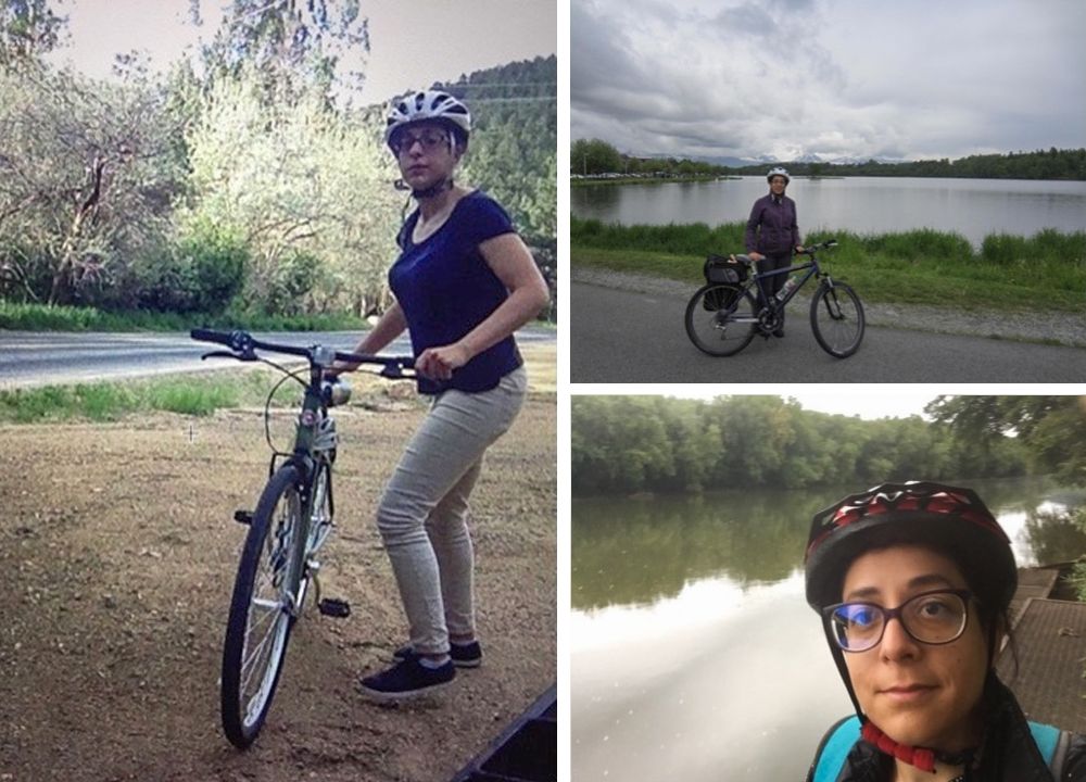 Various biking trips. Left: Betasso preserve, Colorado 2016. Right: Anchorage 2012 (top), C&O canal trail 2020 (bottom).